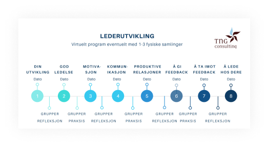 Lederutvikling er et strategisk valg. For at det skal skape faktisk endring, må tiltakene være tett koblet til virksomhetens mål, verdier og kontekst. TNGC tilbyr skreddersydde interne lederutviklingsprogram.